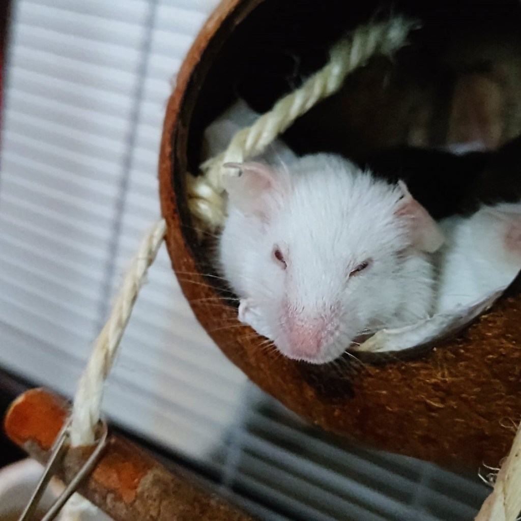 Ma läksin sellele vabatahtlikule vaid ravimeid viima ja lahkusin sealt kahe rotiga (nagu võib aru saada olen ma väga halb hoiukodu sest ma omastan loomi). Loomad said ravi ning nimetasime nad Albuseks, Orioniks ja Melviniks.Albus oli valge/halli segu ja üleni kärnas. Orion oli väike halli kapuutsiga poiss ning Melvin oli üleni must, pidevalt kissis silmadega ja sellise ilmega nagu tunneks pahat haisu. Hüüdnimeks panime tal Stänki, nagu “haisukas”.