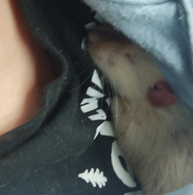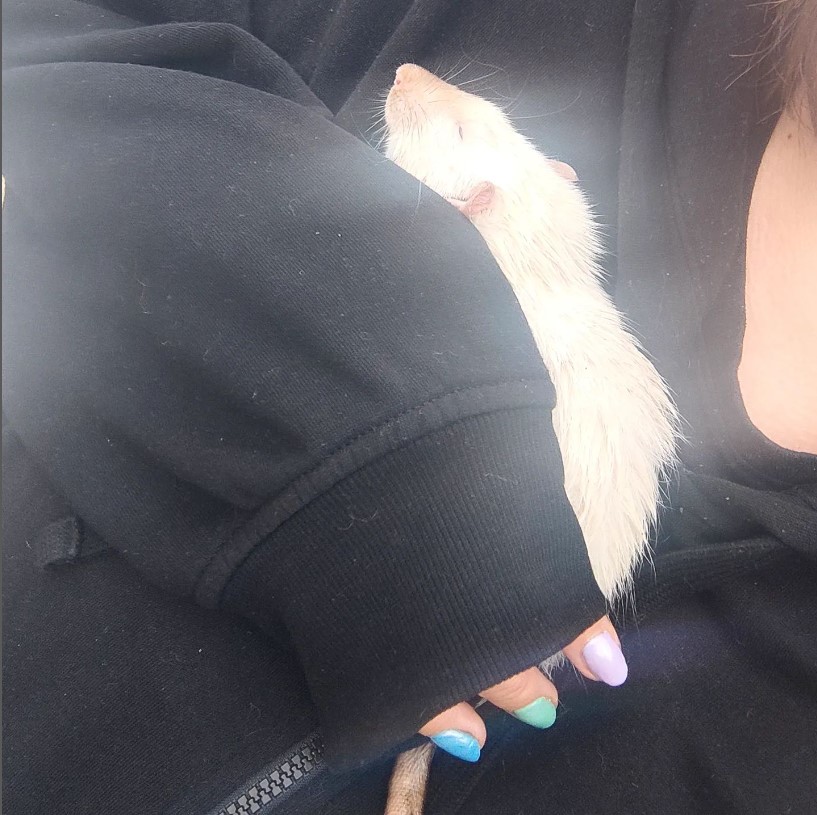 Sellele järgneva nädalavahetuse hommikul proovisid MTÜ naised mulle korduvalt helistada, et rott leiti. Ma olin eufoorias, sekundi pealt riides ja äksi täis, et “davai kuskohas, ma lähen järgi”. Kuna leidja oli venekeelt kõnelev ja mina mitte, siis meie suhtlust vahendas google translate ja selle tulemusena seiklesin ma Mustamäele, kus rotti ei olnud. Peale linnapeal ekslemist võtsin ma suuna Maardusse, kus seesama armas naisterahvas tõi ta minuni, küll aga prügikoti sees. Tal oli seal süüa, vett mitte. See naine vaatas mind nagu segast kui ma ilma kahtlemata leidroti prügikotist välja võtsin ja põue pistsin. Eelmine aasta oli oktoobri alguses haigelt palju vihmasadusid, tuult ja külma – nagu piiripealne talv, mitte sügis. Rotile sai nimeks Teet, kes vist mõistis, et nüüd oli korras ja edasi on kergem, sest ta jäi mu rinnal magama terve tee kui me koju sõitsime. Auto konditsioneer pumpas auto veel sooja õhku täis ja ta magas rahulikult, üks käpp rusikas mu rinnal. Kodus oli tal tohutu janu ning esimesed kaks päeva ta vaid magas.